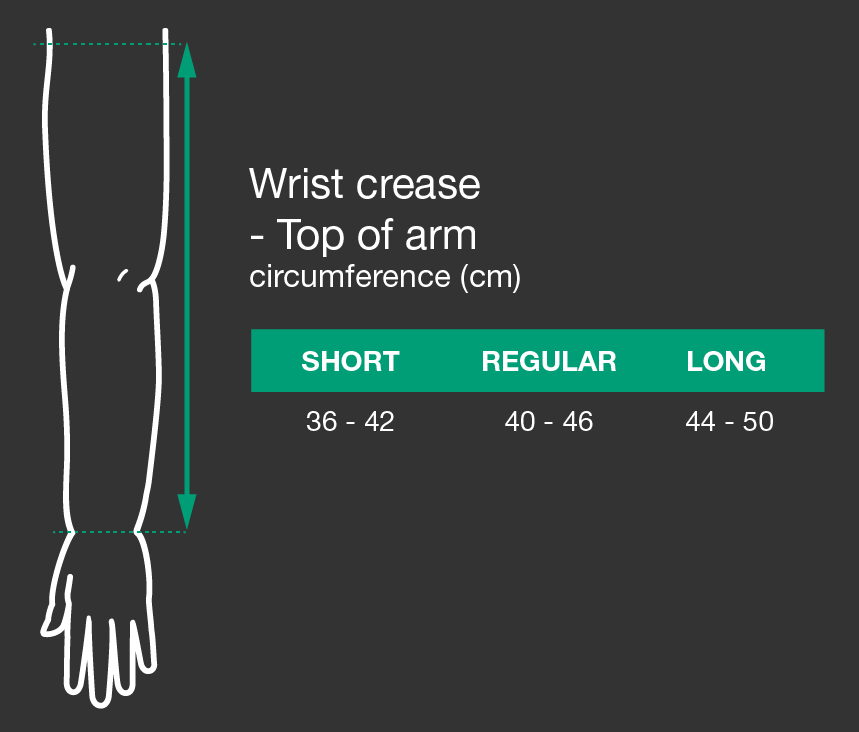 Comfiwave is available in below knee and thigh high styles for legs; and with or without mitten for arms.